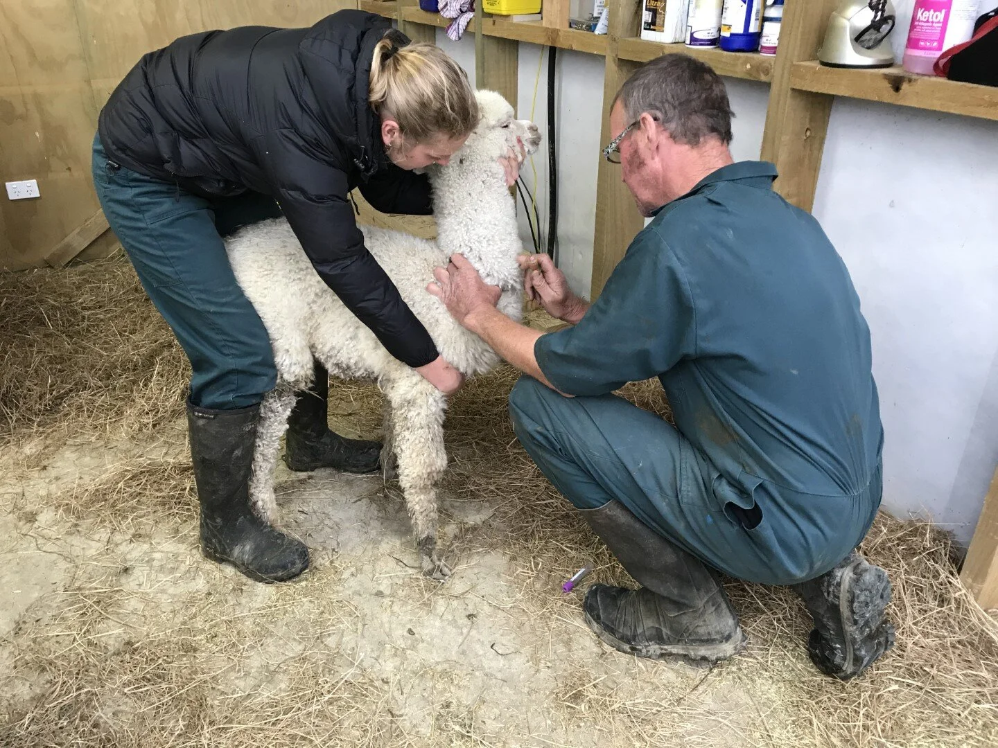 A word of advice, alpacas are very stoic animals so trust your instincts when you see one who seems to be behaving a little differently from usual. Generally, an alpaca will show very little sign that it’s unwell. It would not want to be seen as easy prey in the wild, it’s a natural survival instinct. What that means on your farm is careful observation is your best tool for keeping your alpacas healthy. If you seen one who is slow, lagging behind the herd or sitting more than usual please bring that alpaca into your yard for a closer look. If it has pale gums or inner eye lids, or you are concerned in any way, just call your vet. As your experience grows you will begin to make judgement calls but that knowledge builds slowly so always trust your instincts and call the vet for any alpaca you are worried about.